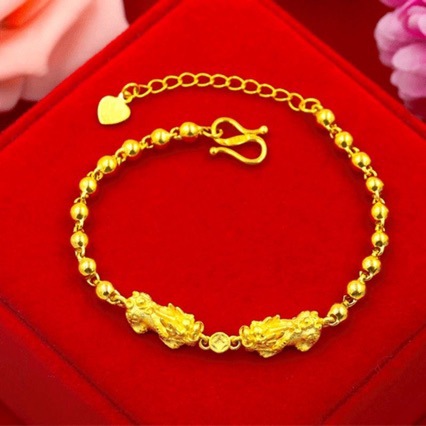 Brass Gold-Plated Double Pixiu Bracelet for Women Vietnamese Sand Gold Pixiu Jewelry Couple Men and Women Bracelets Factory Direct Supply