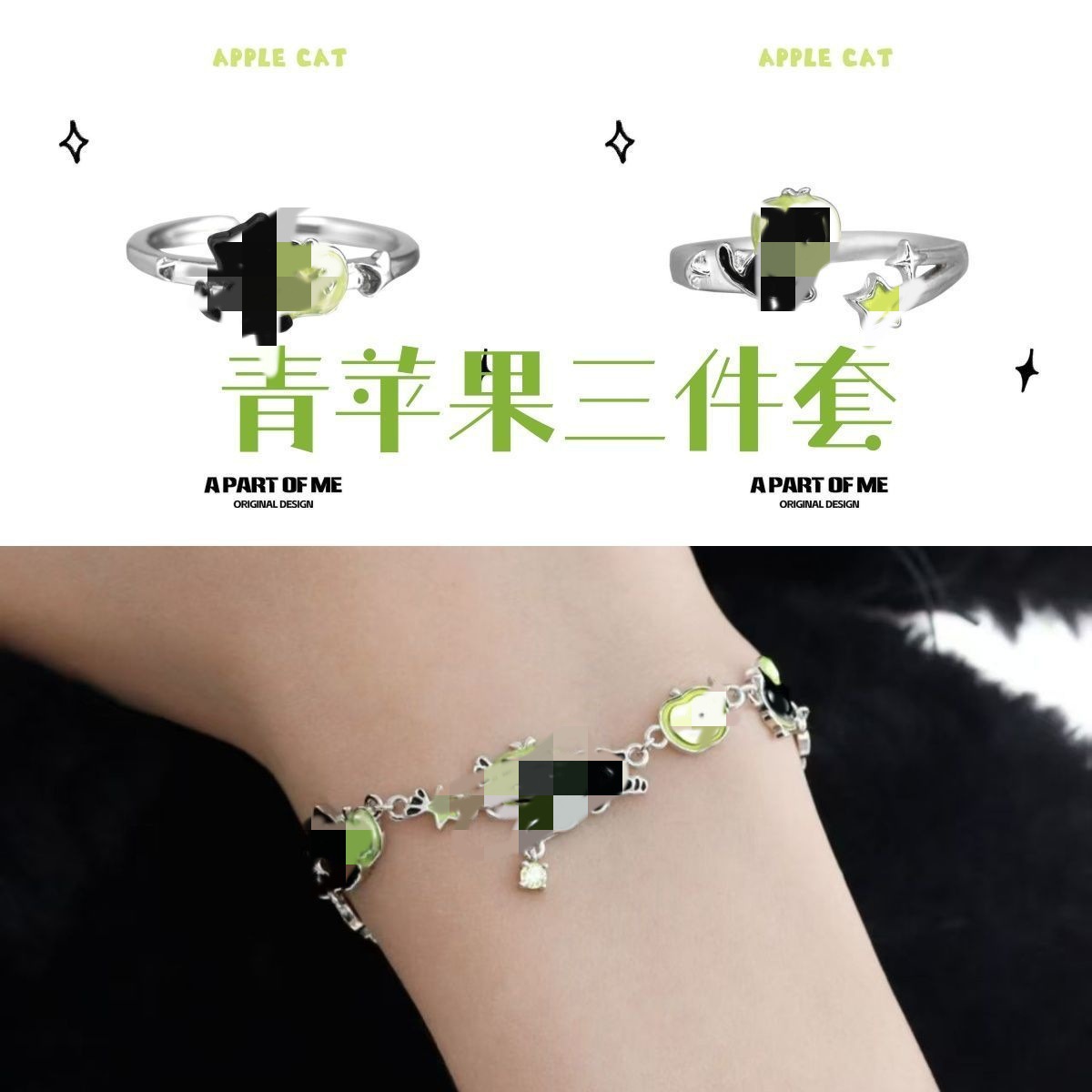 So Cute! Black Cat Green Apple Slice Bracelet 2025 New Niche Accessible Luxury High-End Sweet and Cool New Bracelet
