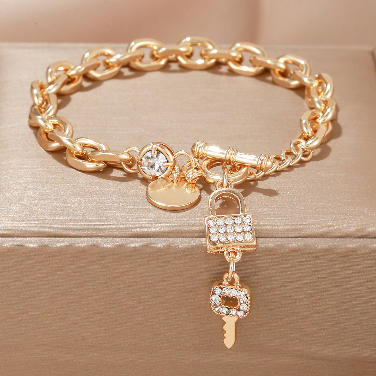 Cross-border European and American environmental protection new alloy woven bracelet female lock key point diamond pendant bracelet fashion elegant bracelet