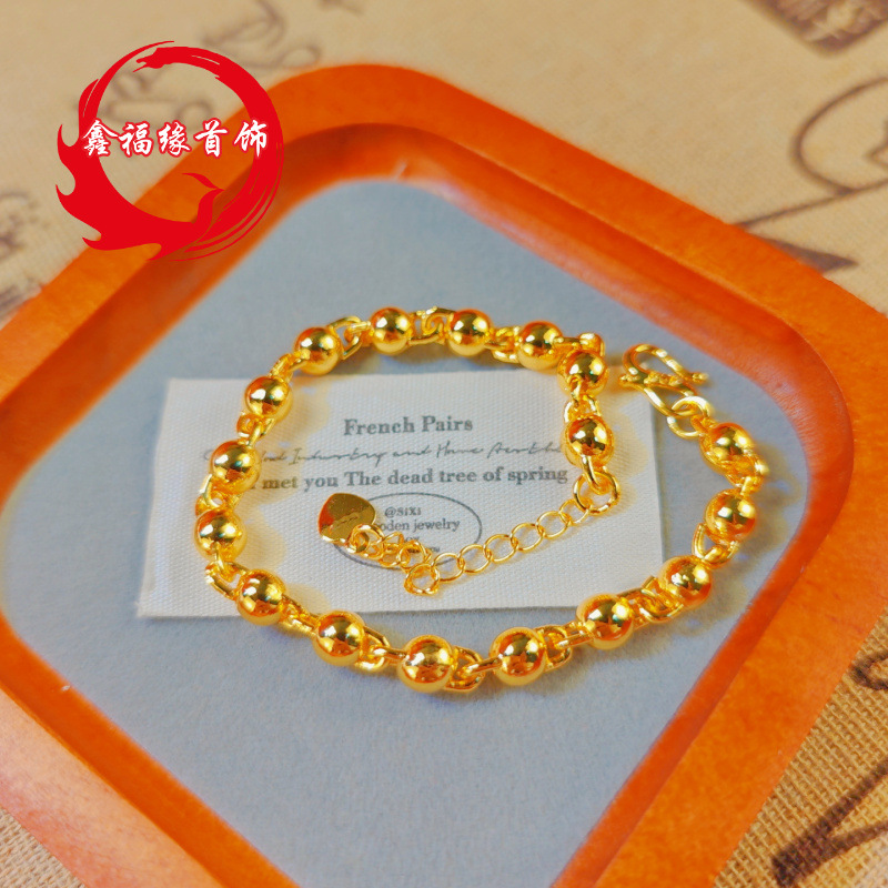Vietnamese Sand Gold New Style Gold-Plated Solid Smooth Matte Round Bead Bracelet for Women, Light Bead Buddhist Bead Bracelet, One-Piece Wholesale