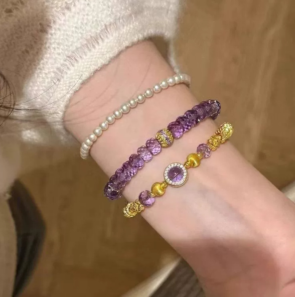 6mm Purple Agate Elastic Cord Bracelet Alloy Ladybug Pendant Motivational Gift Women's Purple Agate Insect Bracelet