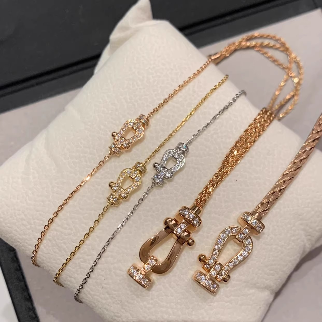 Feijia Full Diamond Plated 18K Rose Gold Couple Gift U-Shaped Horseshoe Buckle Bracelet V Starry Bracelet Magnetic Buckle Bracelet