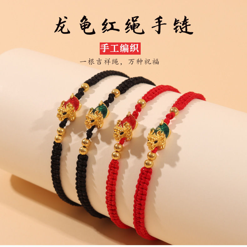 Year of the Dragon Bracelet Dragon Turtle Red Rope Braided Retro Trendy Easiest for Match Handmade Jewelry Bracelet for Friends, Couples and Students