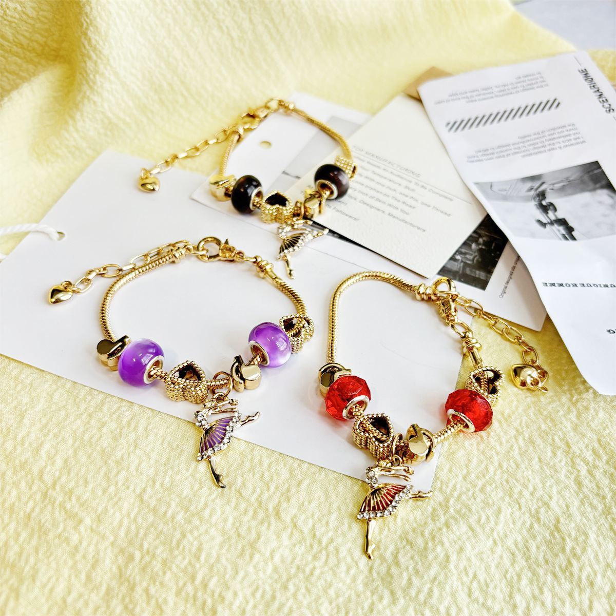 Fashion Hot Selling Musical Note Big Hole Beads Ballet Girl Pendant DIY Charm Gold Bracelet Women's Detachable Hand
