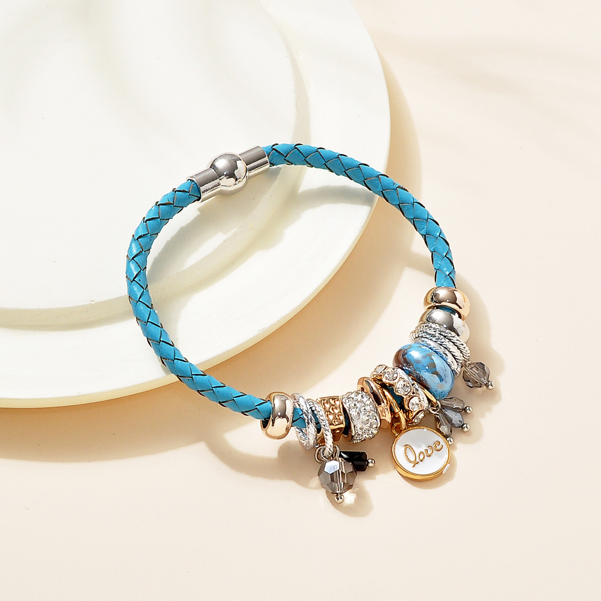 Cross-Border blue leather cross-winding hand-set diamond geometric pendant fashion simple personality ladies Bracelet