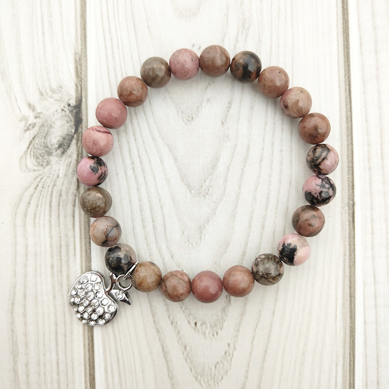Cross-border Amazon New Full Diamond Apple Pendant Black Line Red Stone Powder Crystal White Turquoise Bracelet Jewelry Wholesale