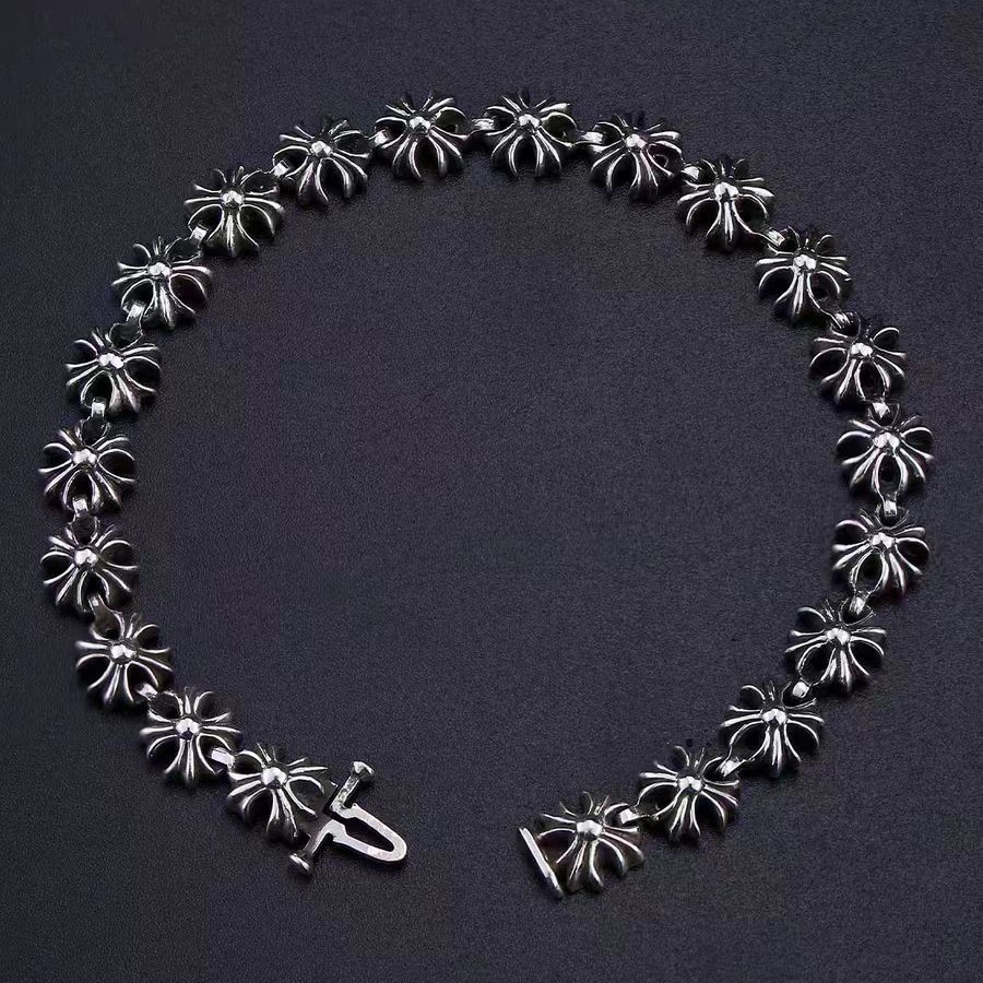 Crow Element Oblique Cross Bracelet for Men and Women, Punk Style American Couple Hip-Hop Simple Old Cross Flower Bracelet