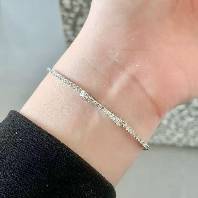 Niche design sweet cool hot girl love rhinestone strap bracelet silver futuristic y2k adjustable bracelet