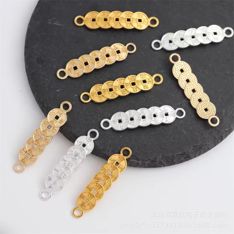 Color retaining alloy 8*36mm five emperor money hand card diy handmade beaded bracelet copper money woven antique hairpin material