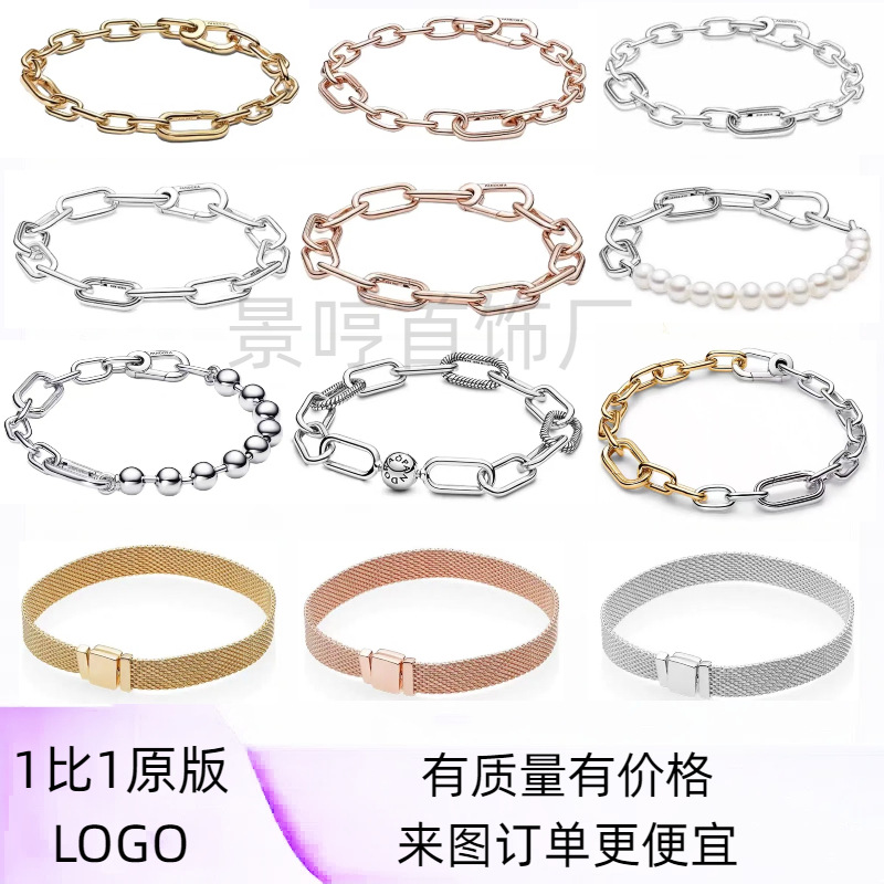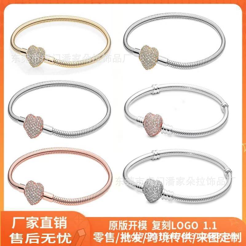 Panjia S925 White Copper Plated Rose Gold Fan Snake Bone Chain Heart Bracelet Fashion DIY Basic Bracelet