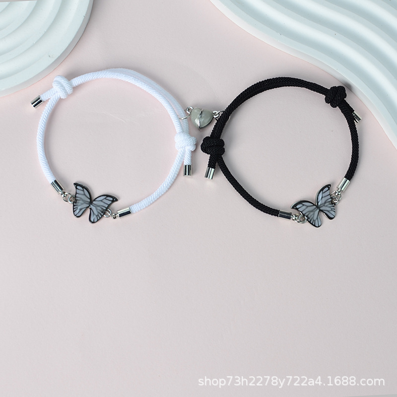 Cross-Border Small Fresh Luminous Butterfly Couple Bracelet Hand-Woven Luminous Love Magnet Bestie Bracelet Jewelry