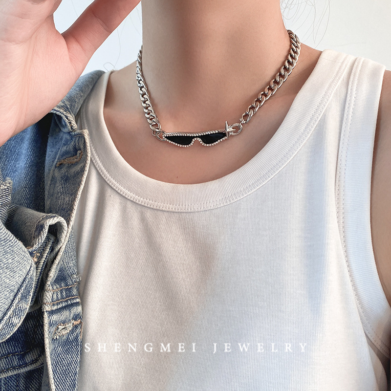 Titanium steel sweet cool sunglasses Cuban necklace female ins trendy hip hop clavicle chain internet celebrity 2023 new accessories necklace