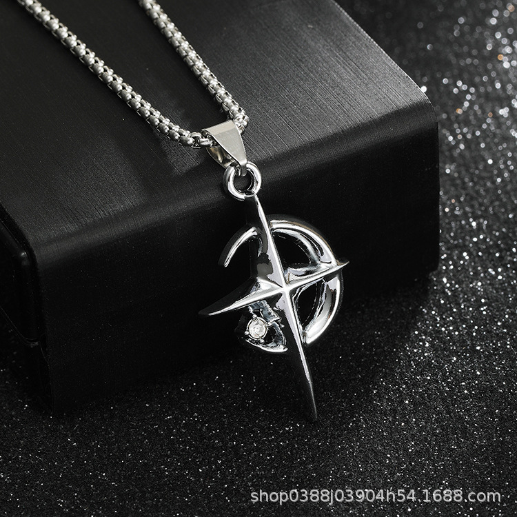 European and American Light Luxury Star and Moon Necklace Niche Four Mans Star Pendant Galaxy Necklace Cold Wind Cross Woolen Chain Jewelry