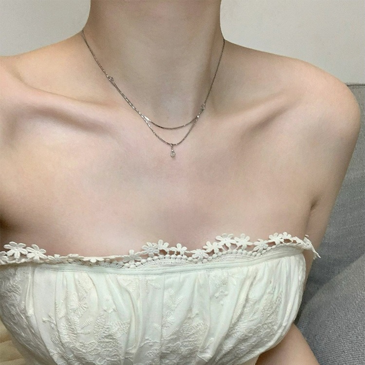 South Korea ins blogger same style simple water drop necklace for women cold feeling light luxury niche clavicle chain stacked necklace for women