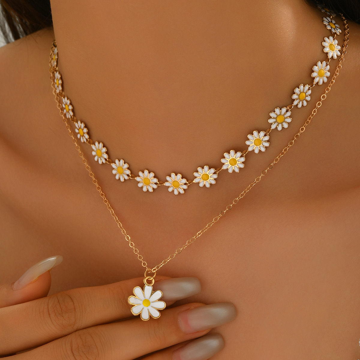 Amazon Cross-Border New Necklace Fresh Style Daisy Pendant Niche Fashion Trend Multi-Layer Clavicle Chain