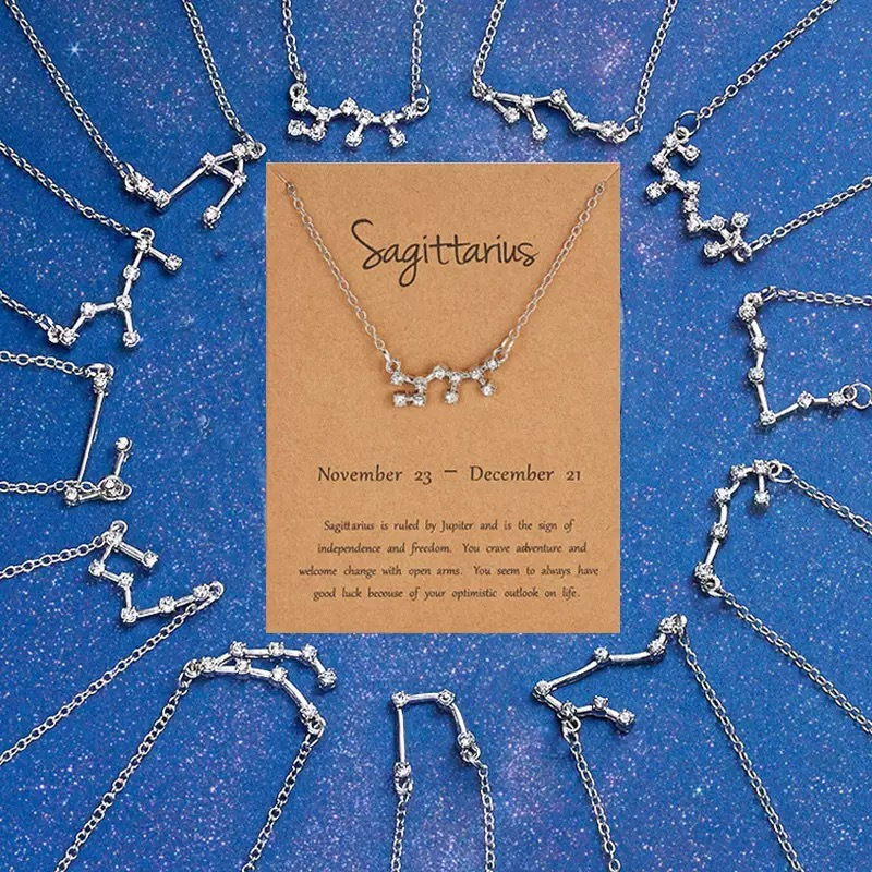 European and American Cross-Border Hot-Selling Jewelry Twelve Zodiac Signs Necklace Creative Letter Symbol Diamond Pendant Necklace Fashion Accessories