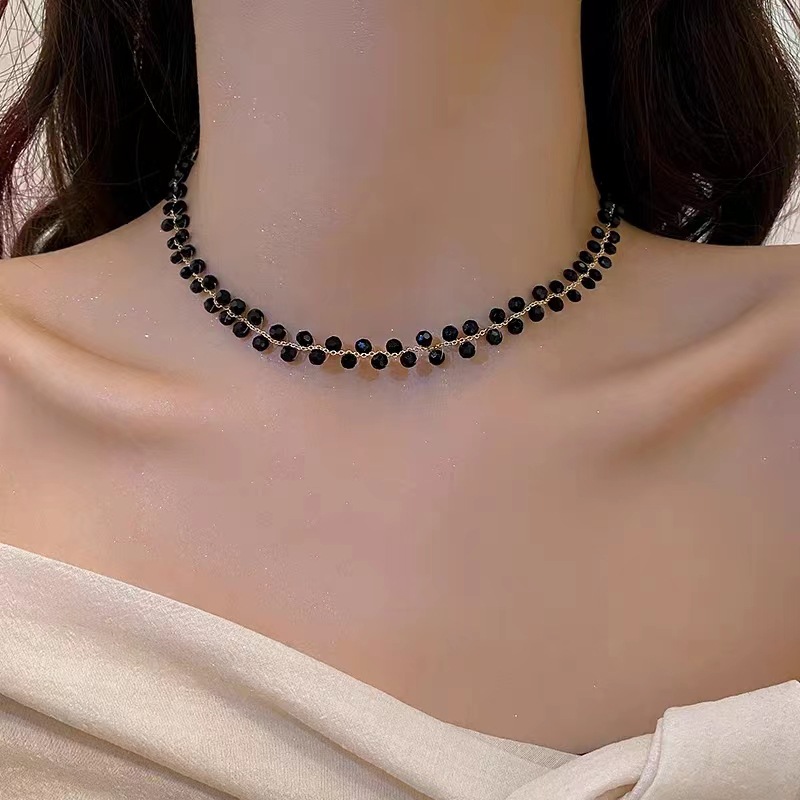 Cool style black crystal necklace 2023 new South Korea elegant simple necklace Internet celebrity High sense clavicle chain