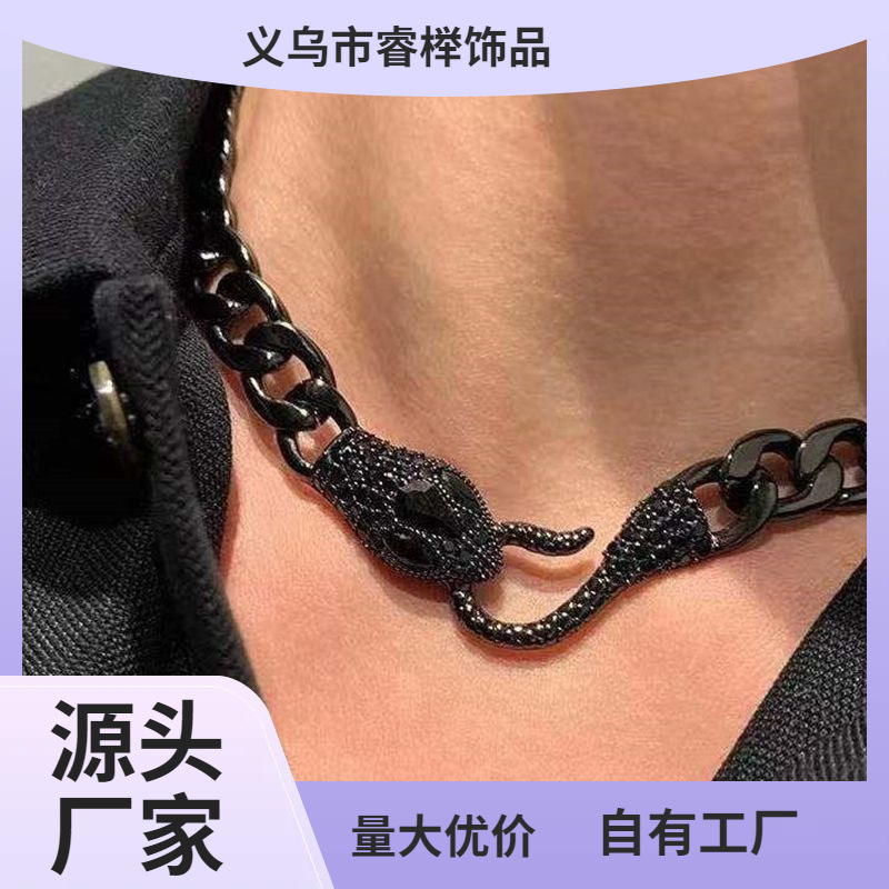 Medusa Snake Cuban Gun Black Spirit Snake Necklace Chain Cyber Red Personality Clavicle Chain Retro Snake Necklace Wholesale