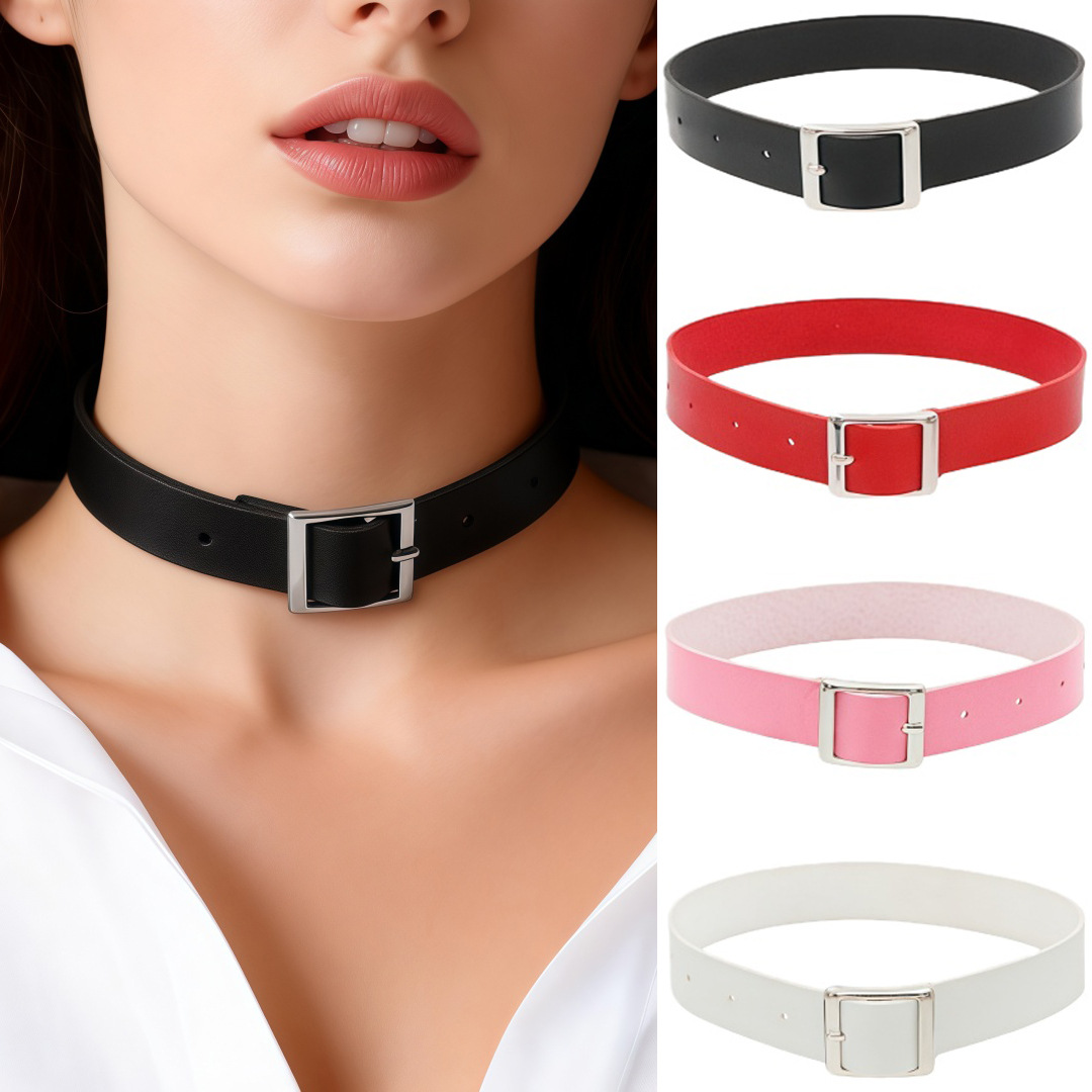 Eco-Friendly Pu Leather European and American Retro Harajuku Punk Rock Leather Choker Women's Neck Strap Collarbone Necklace Women's Trendy Bracelet