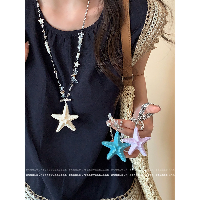 Holiday Island Dopamine Colorful Starfish Beaded Necklace Women's Seaside Vacation Clavicle Chain Long Halter Accessory