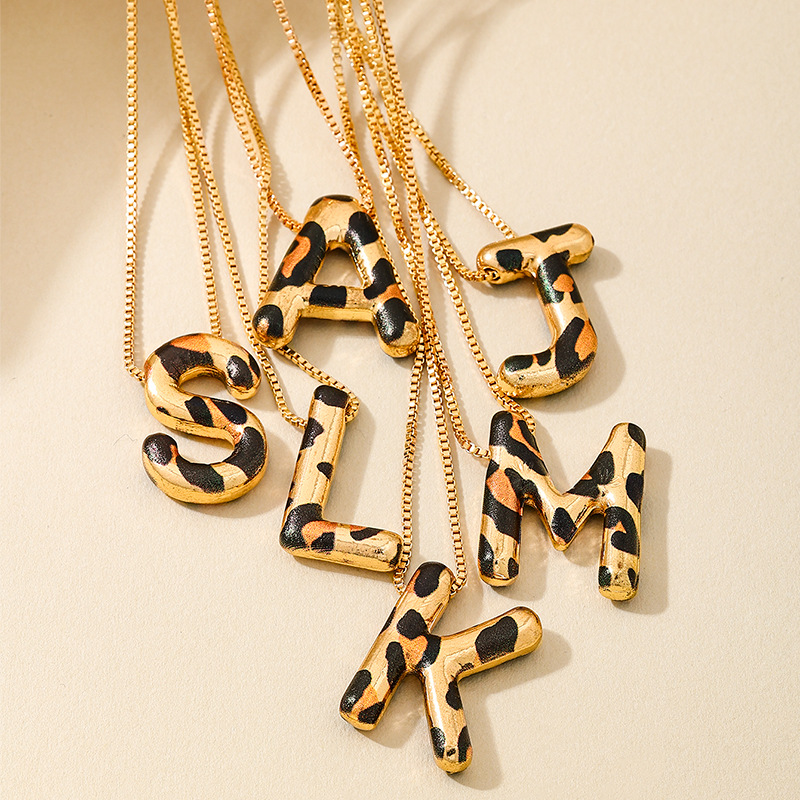 1 European and American fashion personality spotted leopard fashion woman metal 26 English letters lady necklace daily