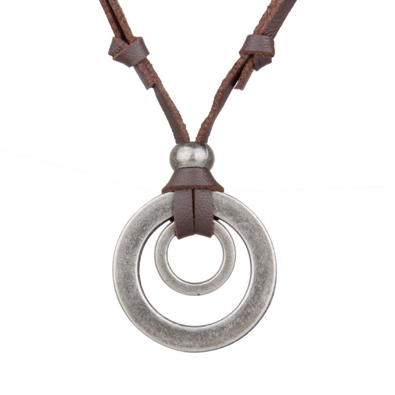 European and American Retro Large and Small Double Circle Leather Rope Necklace Cross-Border E-Commerce Supply Men's and Women's Casual Circle Necklace