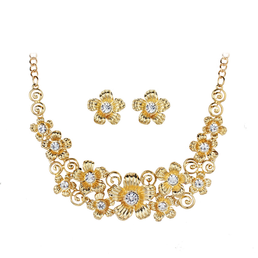 Cross-border exclusive for European and American luxury elegant gold crystal flower chain short necklace bridal necklace suit
