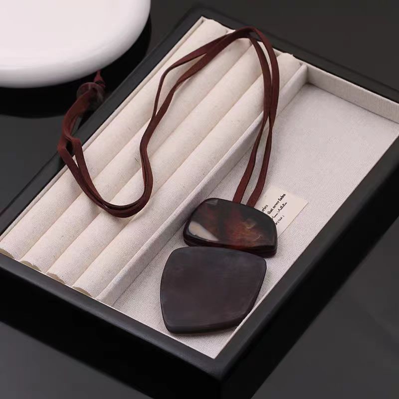 Cross-border new leather rope personalized resin long sweater chain irregular trend geometric rendering contrast color sweater chain