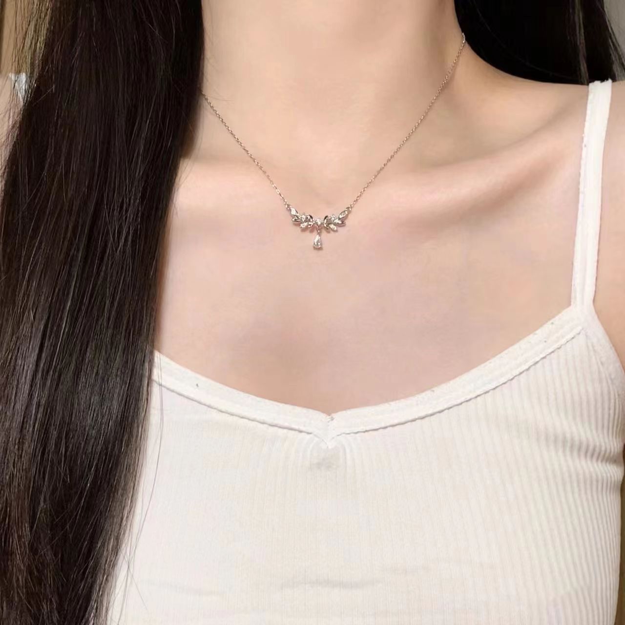 Internet Celebrity Explosive Wheat Ear Water Drop Necklace Women's Ins Cold Style Niche Light Luxury Simple Elegant Collarbone Chain Neck Chain Tide