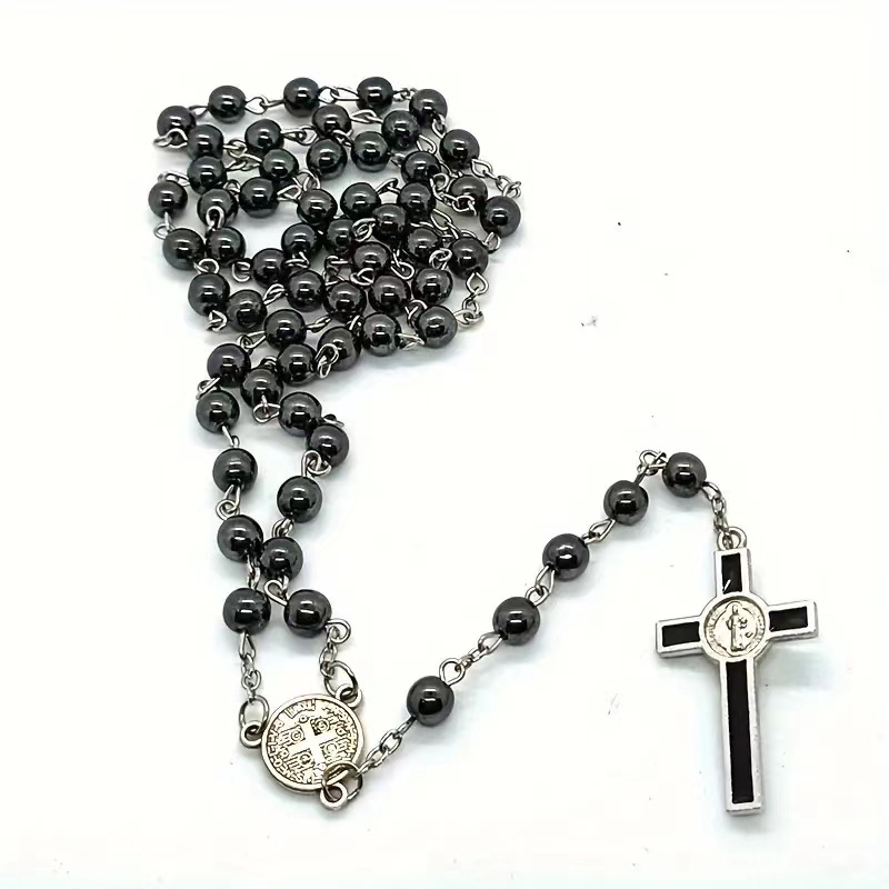 Foreign trade e-commerce St. Benedict black stone necklace cross jewelry Rosary Necklace