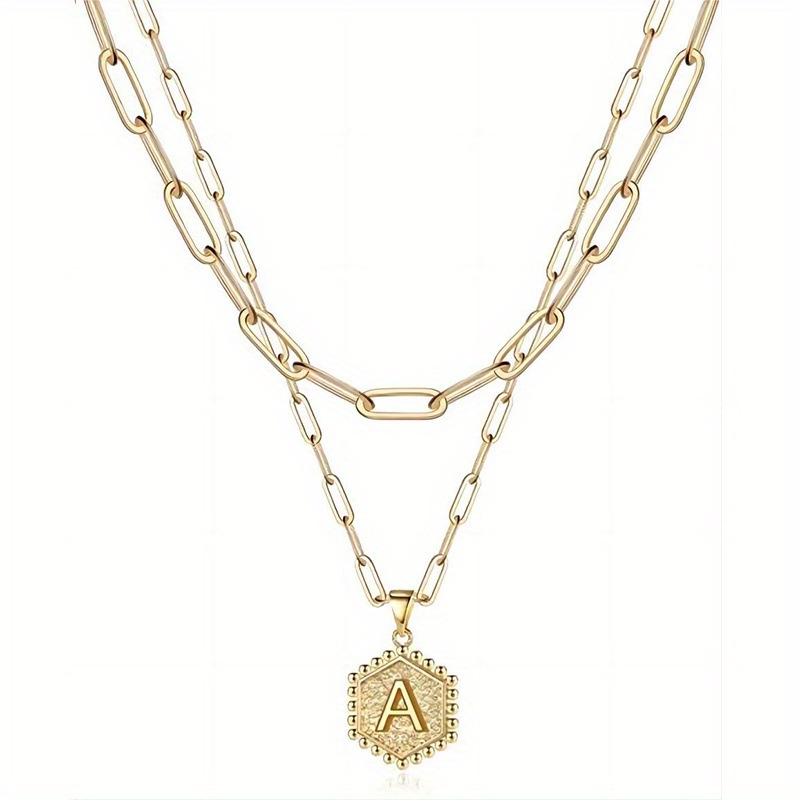 Cross-border hot sale Amazon 18K gold color protection electroplating double-layer letter necklace female 26 English pendant wholesale