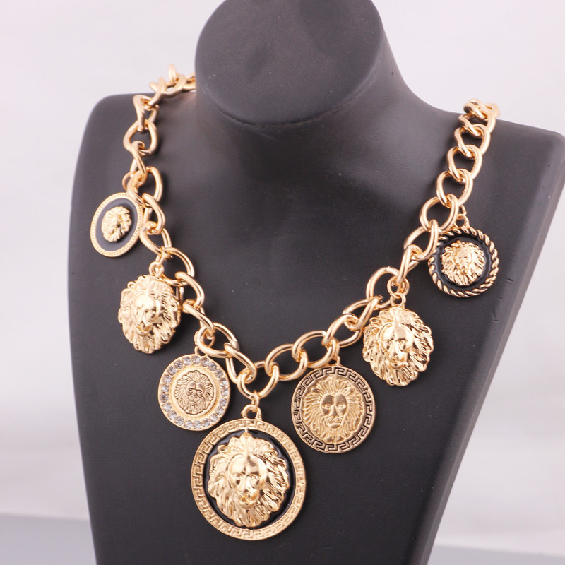 AMZ e-commerce new European and American style fan lion head thick chain exaggerated alloy oil drop pendant necklace