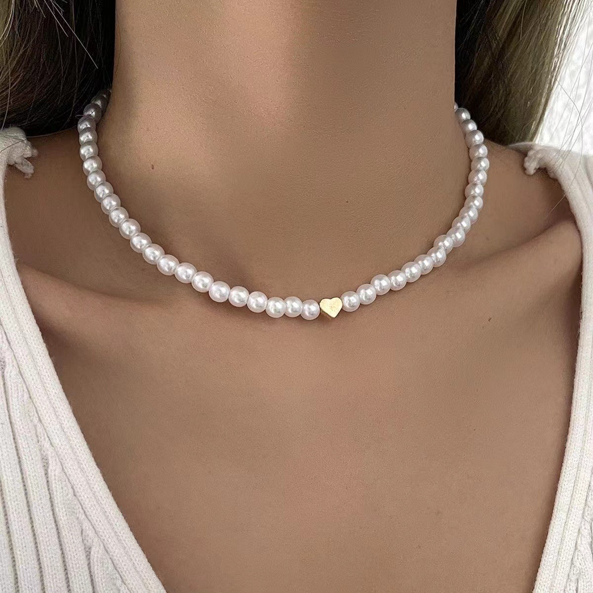 Foreign Trade Cross-border New Personality Simple Short Pearl Love Neck Chain Fashion Retro Clavicle Chain Necklace
