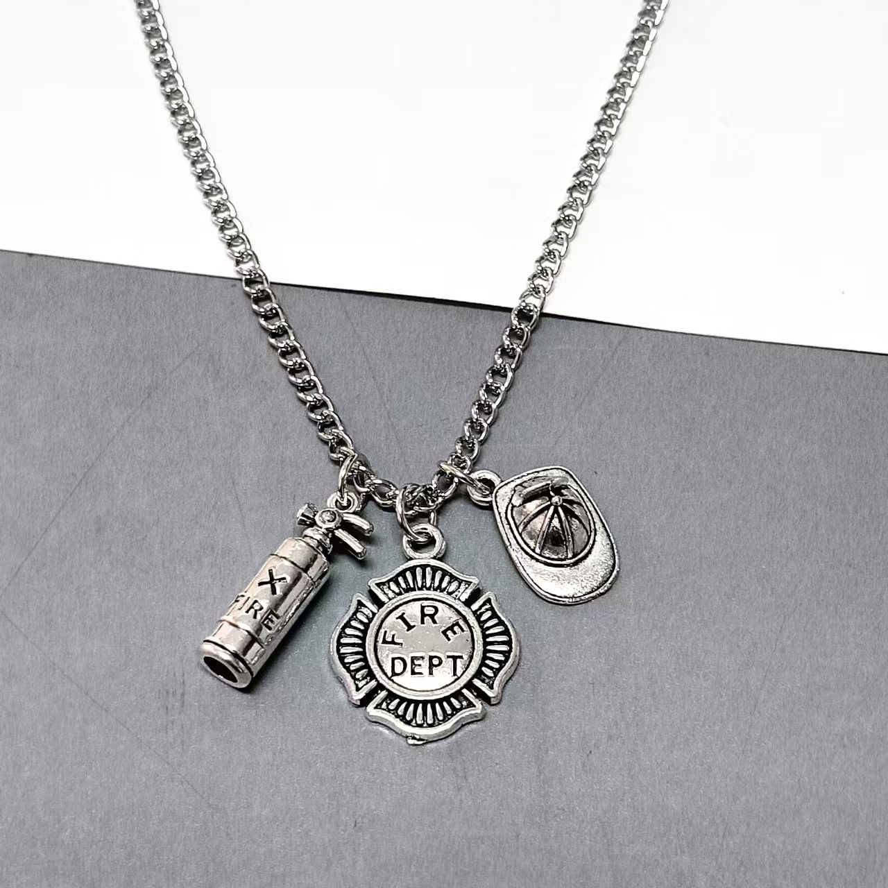 Fire Safety Promotion Jewelry Fire Extinguisher Fire Hat Fire Ax Firefighter Commemorative Necklace
