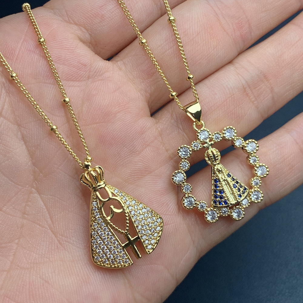 Suxin Cross-Border European and American Hot-Selling Retro Virgin Mary Diamond Pendant Necklace Fashion Ethnic Style Necklace Wholesale