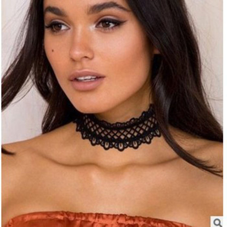 European and American Style Vintage Handmade Hollow Lace Flower Necklace Chain Short Collarbone Necklace Short Versatile Necklace