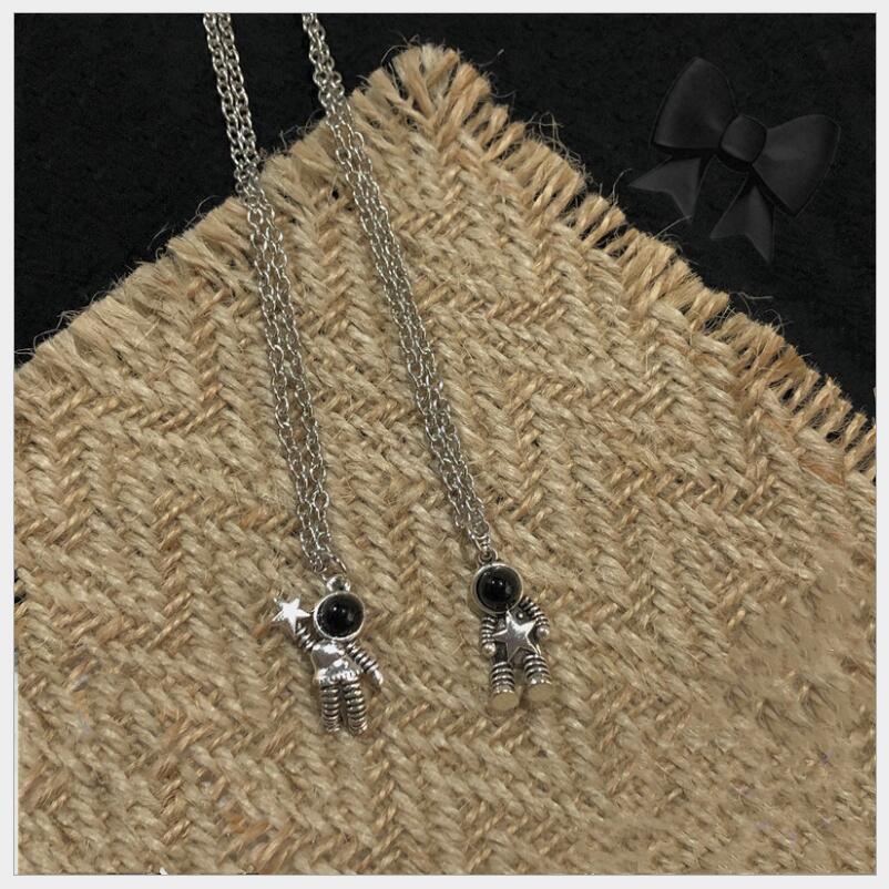 Ins Star-Picking Astronaut Couple Alloy Necklace Holding Star Astronaut Clavicle Chain Hip-Hop Stylish Pendant for Boys and Girls