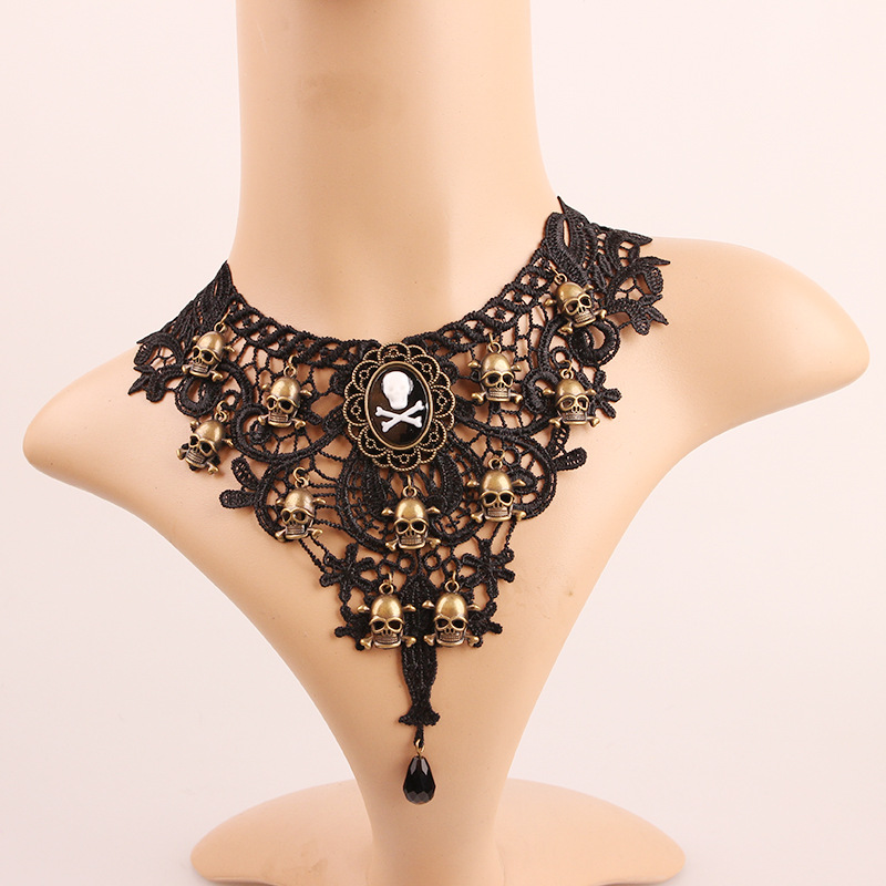 Halloween retro black lace women's necklace skull pirate clavicle necklace accessories foreign trade jewelry Y431
