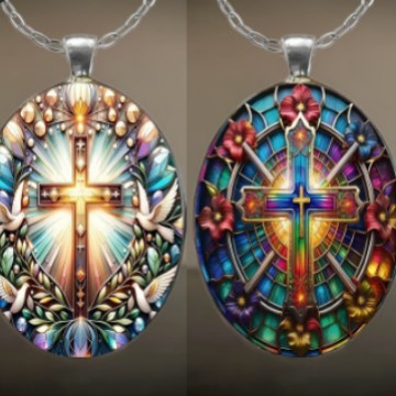 Cross and Dove Pattern Oval Pendant Necklace for Women Versatile Cross-Border European and American Jewelry Retro Sweater Chain Gift