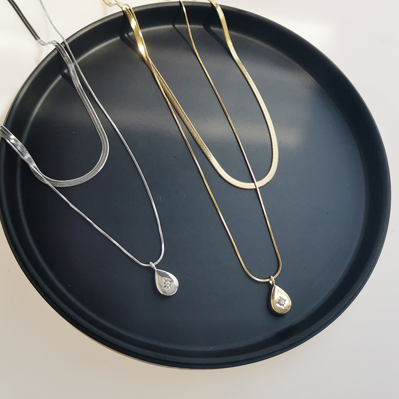 Korean version of double layer water drop necklace explosion niche ins temperament stacked collar bone chain sweater versatile neck chain sweet cool style