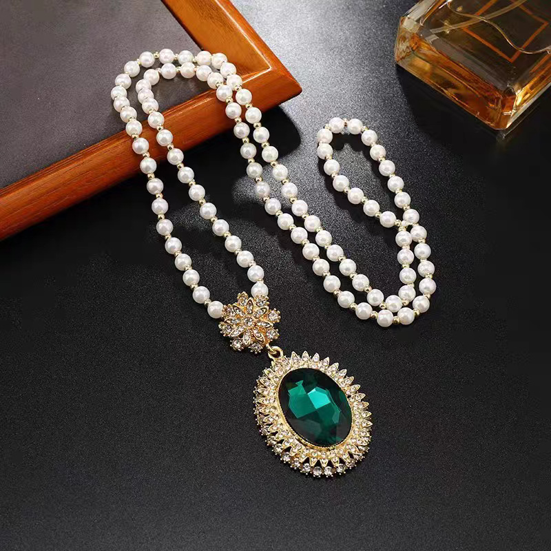 European and American Cross-Border New Fashion Retro Necklace Light Luxury Emerald Water Drop Pendant Multi-Layered Y-Shaped Necklace