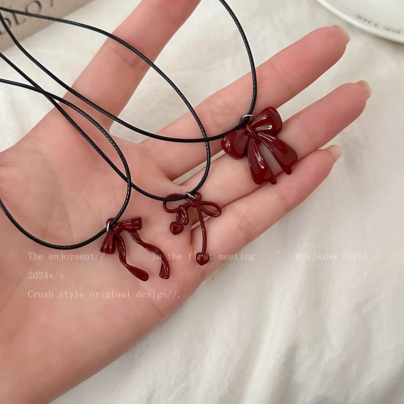 Ancora Red Necklace Niche New Minimalist All-match Bow Black Leather Strap Neck Chain Stacked Women's Clavicle Chain