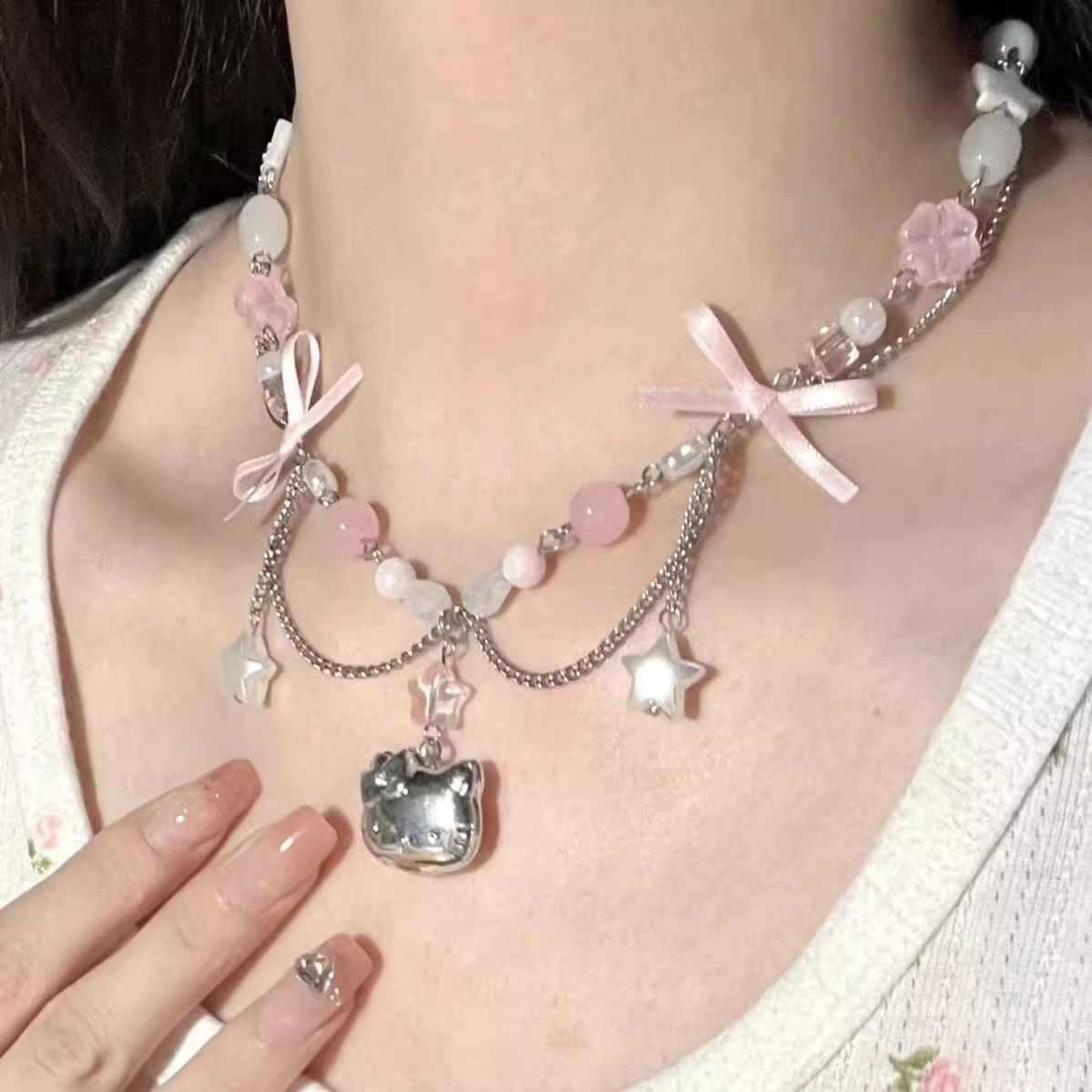 Colorful Sweet Bow Love Tassel Beaded Necklace Women's 2024 New Niche Stars High-value Items
