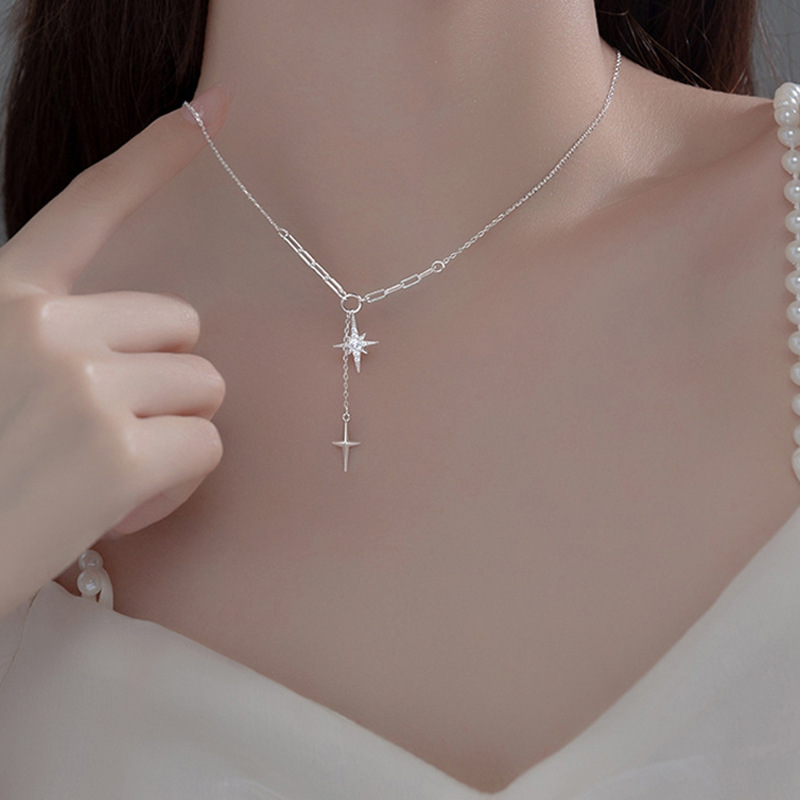 Japanese and Korean jewelry diamond eight Awn star sweater chain long tassel all-match cross pendant personalized clavicle necklace