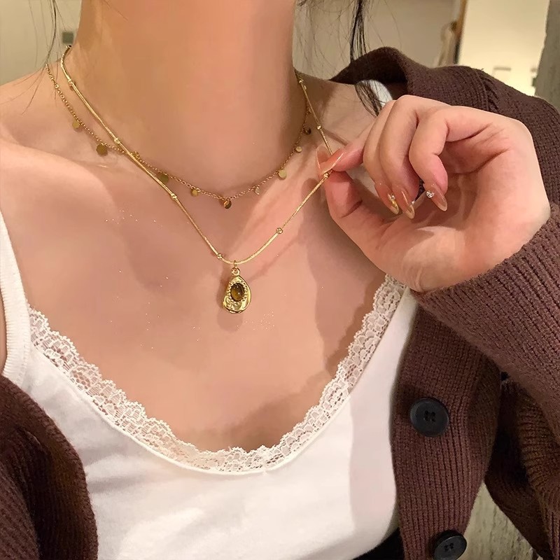 2024 New Maillard Tiger Eye Necklace Design Sense Niche Retro Personality High-end Temperament All-match Clavicle Chain