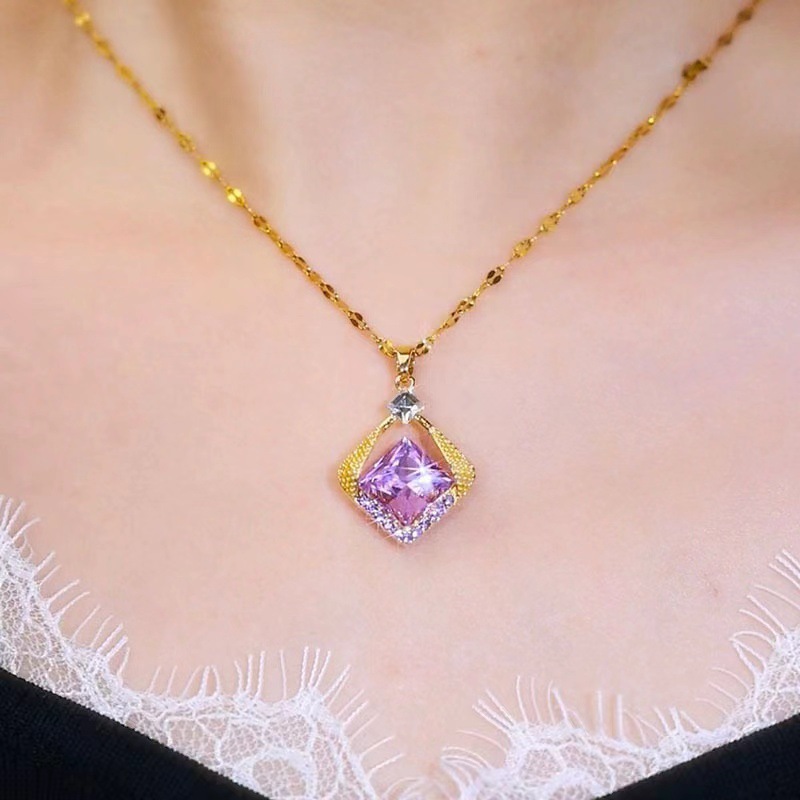 Internet Celebrity Elegant All-match Geometric Diamond Purple Crystal Pendant Necklace Women's New Simple Fashion Explosion Clavicle Chain