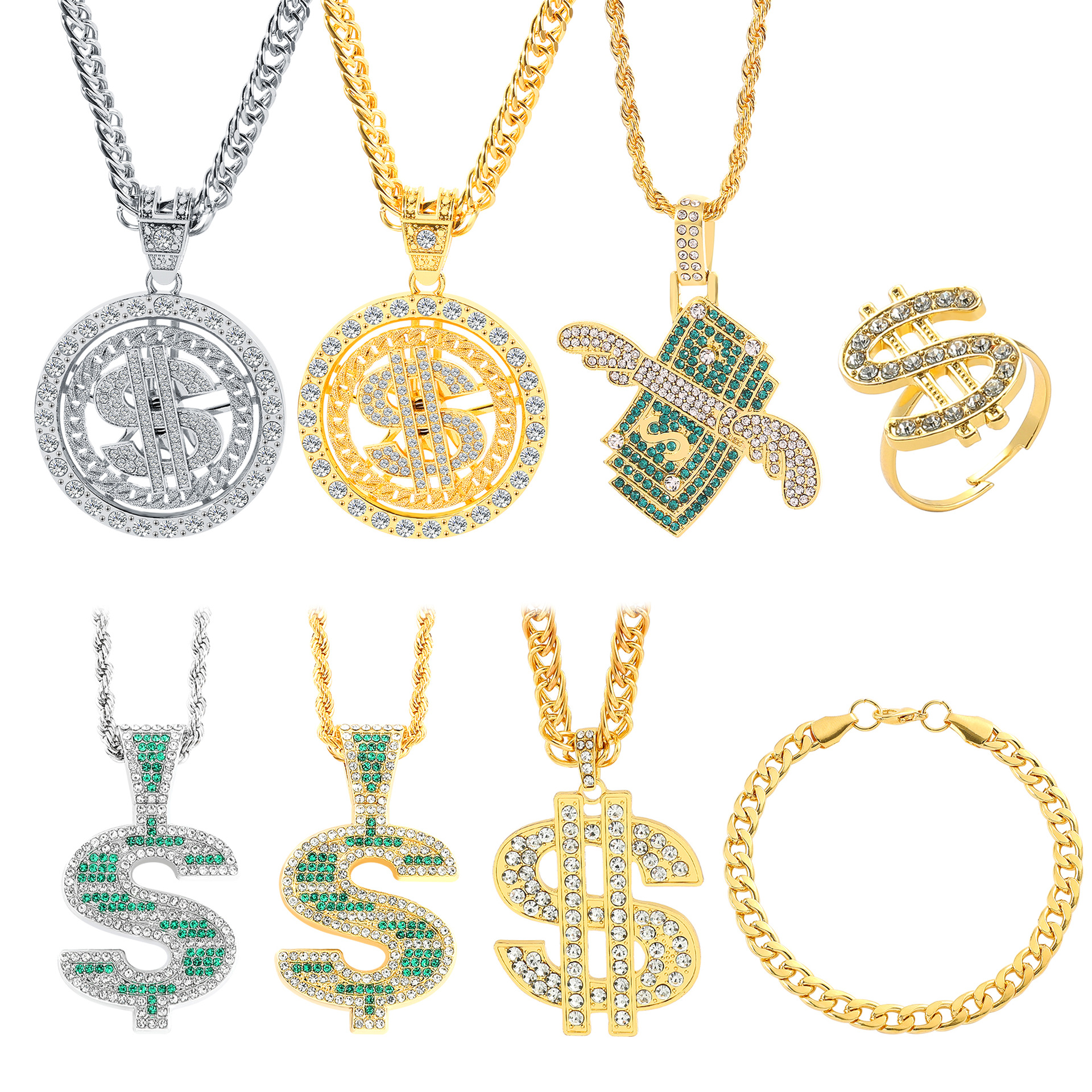 Cross-Border Dollar Symbol High-Speed Rotating Gold Coin Hiphop Cuban Chain Personalized Hip-Hop Men's Necklace Trendy Accessories