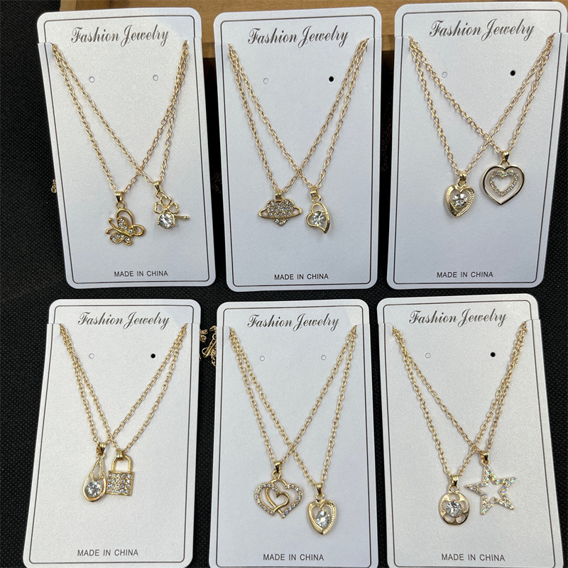 Cross-border new 2-piece gold necklace girl student clavicle chain female necklace suit 2 yuan store supply