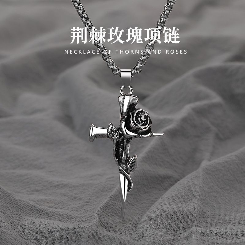Thorn Rose Necklace Fashion All-match Niche Design Sense Woolen Chain High Sense Cross Clavicle Chain for Boyfriend