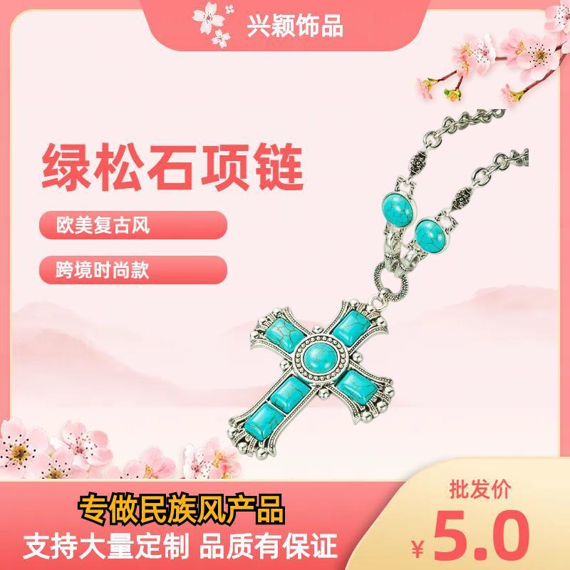 European and American Retro Exaggerated Personality Cross-shaped Necklace Women's Multi-layer Alloy Set Turquoise Sweater Chain Pendant Jewelry